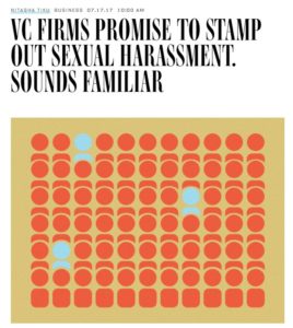 In other words, this time was different, in part because Silicon Valley was already in the midst of a PR nightmare stemming from allegations of sexual harassment and gender discrimination. The outpouring of stories began just one day after Travis Kalanick, once among the most envied CEOs in tech, was ousted from Uber amid charges of unchecked sexual harassment at his $70 billion company. Bolstered by support for Susan Fowler, the former Uber engineer who took her allegations of harassment public, many of the women who recently came forward risked their careers by naming names. In the wake of the disclosures, both Dave McClure, of 500 Startups, and Justin Caldbeck, of Binary Capital, resigned.”